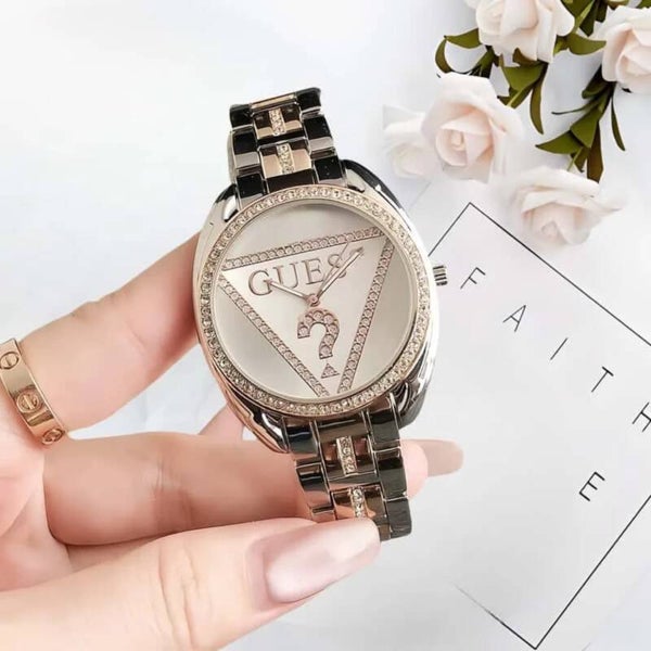 GUESS WITH ELEGENT Dial Display Analog Movement Quartz Feature Auto Date, Alarm, chronograph, Complete Calendar, Day/Date, Not Specified, Perpetual Calendar, water resistant, LED Display, Shock Resistant, Stop Watch, h Material STAINLESS STEEL D